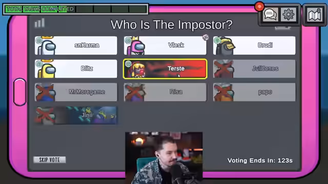 01:08:31Während der Diskussion meldet ein Spieler eine Leiche. Die Ermittler konzentrieren sich auf die Leiche in Lower Engine und analysieren die Bewegungen der Spieler während der Tat. Terste sagt, er sei die ganze Runde in Electrical gewesen, was von anderen angezweifelt wird. Die Kommunikation der Spieler ist verwirrend; jemand lügt über seine Position. Der Streamer äußert den Verdacht, dass der Imposter zwischen Brody, Karma und einer dritten Person sein muss. Die Abstimmung steht bevor und die Crew-Mates müssen sich entscheiden, wem sie am meisten trauen.