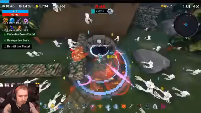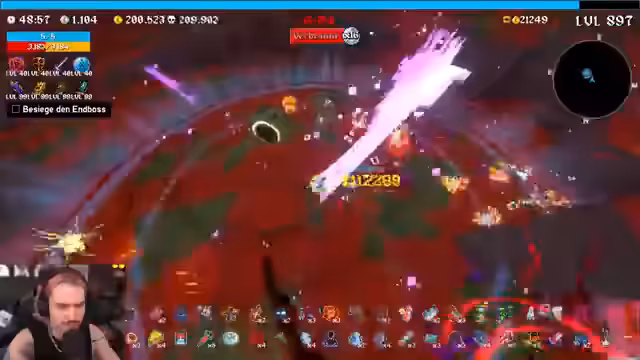 03:29:49Im Bosskampf gerät der Streamer in Schwierigkeiten. Er wird zurückgebeamt und verliert den Überblick, während er eine Kiste sucht. Er schätzt seinen Score auf rund 264.800 Punkte ein und analysiert, dass die fehlenden Endless-Waves in Stage 1 und 2 den Run limitierten. Der Fokus liegt auf der Fehleranalyse nach einem beinahe-Tod und der Einschätzung des laufenden Runs.