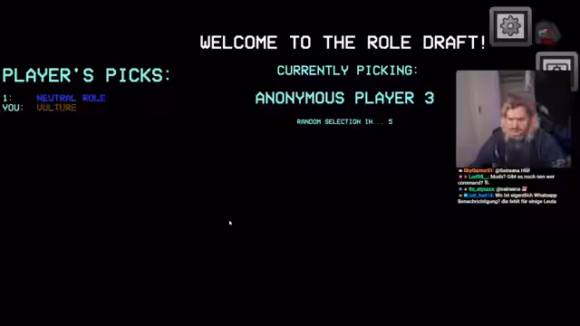 00:37:03Nachdem der Streamer die Themen besprochen hat, wechselt er zum Hauptinhalt des Abends: dem Spiel Among Us mit Modifikationen. Er ist sichtlich erleichtert, von persönlichen Themen auf das Spiel umzuschalten. Er beschreibt den Prozess, eine Lobby zu joinen, und kommentiert den Start des Spiels sowie die Rollenverteilung, wobei er selbst wieder eine neutrale Rolle als Vulture Guesser innehat.