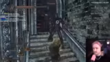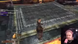 00:29:31Nach dem erfolgreichen Erreichen der Hängebrücke kämpft sich der Streamer durch einige Gebiete. Er erreicht den Executioner's Chariot-Boss und den Covetous Demon. Der Kampf gegen den Chariot verläuft zügig, doch der Covetous Demon erweist sich durch seine Giftsporen als besonders gefährlich. Während des Vormarschs in das Gebiet Iron Keep wird der Streamer mehrfach von anderen Spielern invadiert. Diese Invasionen sind äußerst fordernd und führen wiederholt zum Tod, da die Gegner aggressiv agieren und den Streamer überrumpeln.