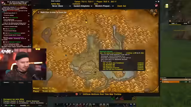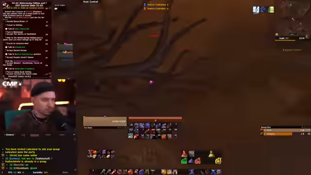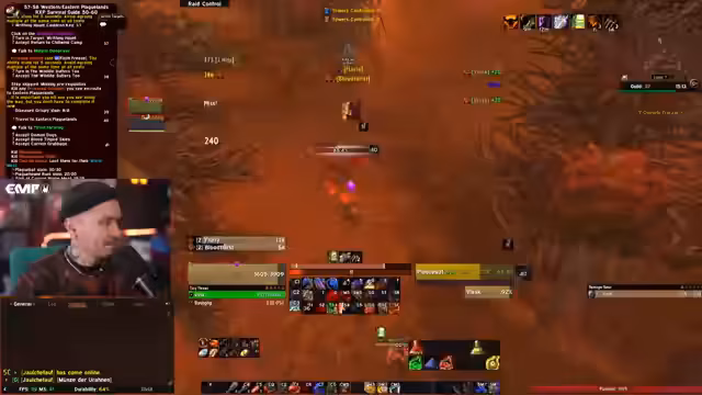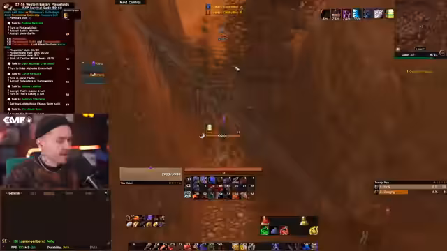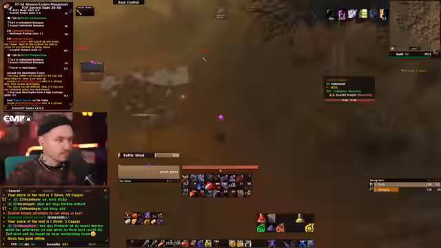 10:12:25Der Stream konzentriert sich auf das gemeinsame Erreichen des Level-Ziels 60. Es wird über die Raids gesprochen, wobei der Streamer Bedenken bezüglich der Organisation eines 70er-Raids äußert, da nicht alle Anmeldeten teilnehmen können. Dennoch wird der Fokus auf das aktuelle Ziel gelegt, eine neue Quest in den Westlichen Pestländern anzunehmen, bei der ein 'plappernder Ghoul' getötet werden muss, um 6000 EP zu erhalten. Der Chat wird informiert, dass der Streamer kurz einem BRD-Run als Tank beitreten wird.