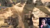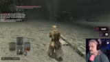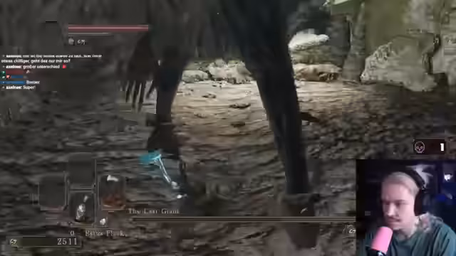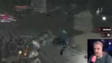 02:51:15Der Streamer gerät in eine schwierige Situation, in der er feststeckt, da er nicht mehr zum Bonfire zurückkehren kann, ohne den Boss zu besiegen. Er muss eine Entscheidung treffen, ob er den Kampf eingeht oder sich mit Dark Soul teleportiert und die Seelen opfert. Er ist wütend über die Situation und sucht nach Backseat Gaming von Zuschauern, um eine Lösung zu finden. Schließlich benutzt er die Fackel eines Gegners, um seine eigene anzuzünden.