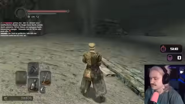 05:15:03In der Dunklen Festung gerät der Streamer in schwierige Situationen, in denen er von Gegnern festgehalten wird und Schaden erleidet. Er stellt fest, dass dieser Abschnitt ohne bestimmte Gegenstände wie Alluring Skulls sehr anspruchsvoll ist. Mehrere Versuche enden mit dem Tod, was ihn frustriert, da er das Gebiet eigentlich umgehen wollte, aber stattdessen mehr Zeit verliert.