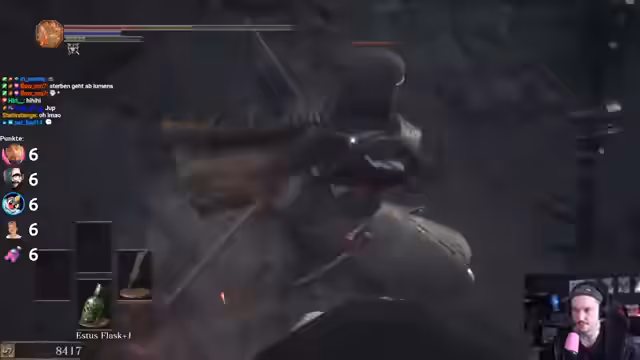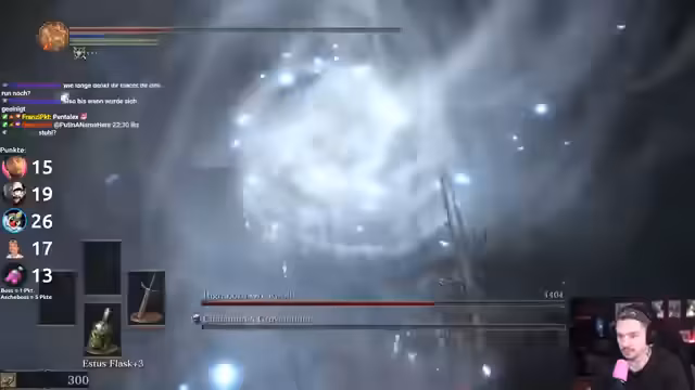 01:51:41Die Suche nach Bosse gestaltet sich schwierig, da viele Wege nur zu Items führen. Der Spieler betont, dass er für den Waffen-Upgrade dringend mehr Titanite Shards benötigt, was sein Fortkommen behindert. Er diskutiert mit dem Chat über mögliche Skip-Methoden, wie den unsichtbaren Weg zu Archdragon Peak, und muss feststellen, dass sein Damage für einige Bosse wie Pontiff Sulyvahn unzureichend ist. Andere Teilnehmer wie Oli und Gustav Gabel haben bereits mehrere Bosse gefunden, was den Druck erhöht.