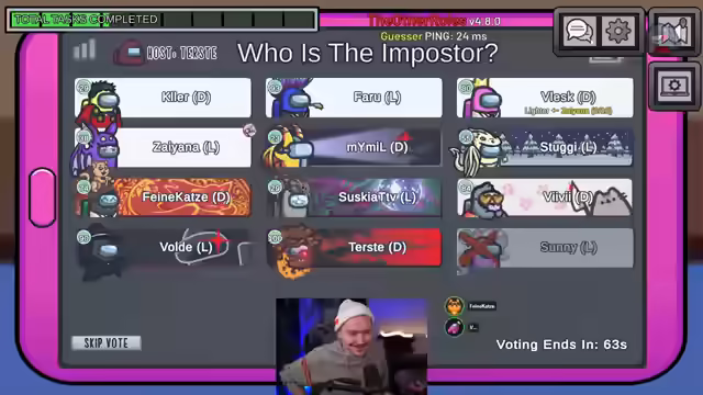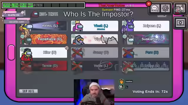02:15:49Es wurde die Anweisung gegeben, nichts zu sagen und darauf vertraut, wer wen gekillt hat. Es wurde argumentiert, dass 'Vivi' sicher war, da sie in Camping war und der Streamer mit 'Meimel' unterwegs war. Es wurde spekuliert, dass 'Faro' den letzten Kill gemacht hat. Es wurde die Frage aufgeworfen, warum 'Wolde' nicht gevotet wurde, obwohl er mehrmals sagte, man solle ihm vertrauen. Es wurde die Vorhersage von 'Katze' erwähnt, dass ein Crewmate aus der Dekontamination läuft und im Admin-Table jemanden im Vent entdeckt. Es wurde die Enttäuschung darüber geäußert, dass der Streamer nicht zum Sidekick gemacht wurde, obwohl er dies gecallt hatte. Es wurde vorgeschlagen, 'Terste' zum Sidekick zu machen, wenn man Jackal wird. Es wurde die Beobachtung gemacht, dass 'Vivi' versucht hat, 'Terce' mit einem Ninja-Kill zu töten. Es wurde die Aussage von 'Terce' erwähnt, dass er Meier ist und seinen Button drückt.