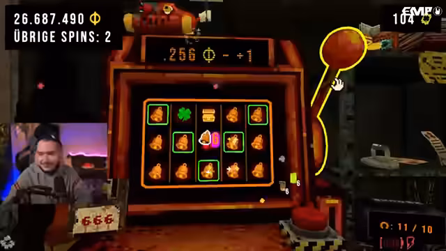 04:15:12Nachdem der Streamer einen hohen Betrag erreicht hat, wagt er einen riskanten Schritt. Er gibt einen Großteil seines Geldes aus, um in die nächste Runde zu kommen, und setzt alles auf die Rendite seiner Items. Durch den Einsatz von speziellen Glücksbringern wie der Batterie, die Items wiederauflädt, und dem Elektriker, der Skalierung bringt, versucht er, sein Vermögen exponentiell zu steigern. Die Items werden jedoch nicht immer zuverlässig aktiviert, was das Risiko erhöht.