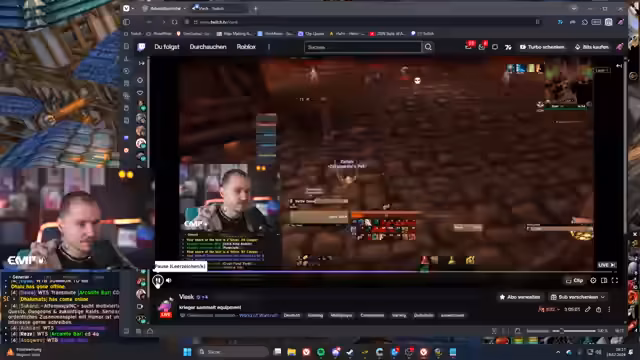 10:26:20Die Streamer betreten die Blackrock Depths-Instanz LBRS, wobei sich der Fokus auf das Sammeln von Ausrüstung und die Besprechung der Ziele liegt. Es werden benötigte Gegenstände wie Waffen und Handschuhe für die Gruppe ermittelt. Der Streamer muss zunächst seine Heilwerte manuell mit dem Taschenrechner zusammenrechnen, da keine Add-ons installiert sind. Die Diskussion konzentriert sich darauf, welche Items in der Instanz zu finden sind und welche Priorität sie haben, um Ausrüstungs-Upgrades für die Gruppe sicherzustellen.
