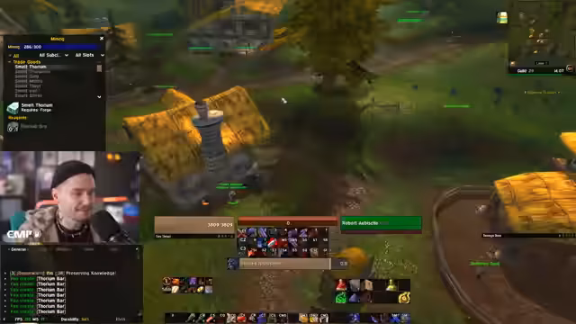 09:14:59Der Streamer sammelt dringend Ausrüstung in Blackrock Depths, konzentriert sich auf das letzte fehlende Booty-Bay-Item und platziert seinen Ruhestein strategisch, um den nötigen Buff zu erhalten. Es werden Probleme mit PvP-Flags und ständigem Whisen von Nicht-Guild-Mitgliedern erwähnt, was den Prozess stört. Der Streamer betont den Unterschied im Dungeon-Erlebnis mit einem Magier, besonders für Portale, und weist auf geplante Solodurchgänge von Jan im Scholomance-Kräutersammeln hin.