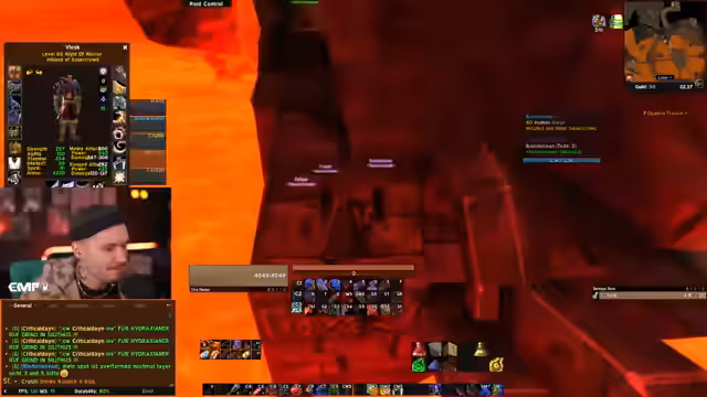 07:40:42Der Streamer konzentriert sich nun auf die Notwendigkeit, die Quests für die Hydraxianer abzuschließen, um an den Molten-Core-Raid teilnehmen zu können. Er erklärt den Prozess des Rufgrinds in Silithus und die Notwendigkeit, einen bestimmten Ruf zu erreichen. Gleichzeitig muss er Kills in UBRS und BRD für seine eigene Quest erledigen, was er mit dem Raid-Koordinator abstimmt, um eine effiziente Durchführung zu gewährleisten.