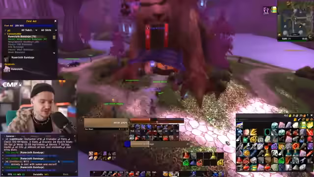 00:06:33Nach Abschluss von Operation Linda, dem Boosten eines Gilde-Mitglieds, startet der Streamer ins tägliche Farmen von Items in World of Warcraft. Die Hauptziele für den Tag sind Dungeons wie Stratholme (UD), um spezifische Ausrüstung für den Tank-Raid zu sammeln, einschließlich eines Helms, Umhangs und Hosen. Priorität hat der Aufbau von notwendigen Ressourcen wie neuen Dummies, Buff Food und heavy Runecloth Bandage, um für die bevorstehenden Raids gerüstet zu sein.