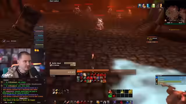 09:10:39Es wird über ungewöhnliche Game-Mechaniken gesprochen, wie das Überleben in Lava in Ironforge durch Nutzung von 'Light of the Loons' oder durch Ausloggen. Der Streamer schildert ein chaotisches Szenario, bei dem er versehentlich Items an jemanden schickt, obwohl er eigentlich organisierter ist. Er beschreibt den Stress, der durch die Raidorganisation entsteht, und denkt an den nächsten Buff, den er benötigt, während gleichzeitig das Boot nach Booty Bay ablegt.