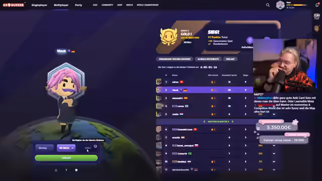 Vlesk kämpft in GeoGuessr Ranked Games um den Master-Rang