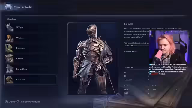 04:51:49Die Streamer tauchen tiefer in die Systeme des Spiels ein. Ein Spieler fragt nach dem Vorteil des Siegelgefängnisses, daraufhin wird erklärt, dass es permanente Runen-Boosts oder Upgrades bietet. Die Bedeutung von Stats und Resistenzen wird thematisiert, als festgestellt wird, dass Resistenzen gegen Statusleiden wenig bringen. Sie stoßen auf einen Händler und finden heraus, dass sie ein zweites Set für ihre Ausrüstung kaufen können. Die Notwendigkeit, Loot zu sortieren und nur nützliche Ausrüstung mitzunehmen, wird als strategisches Element erkannt, ebenso wie die Bedeutung von starken Waffen und passiven Fähigkeiten.