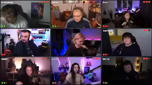 04:23:29Nach mehreren Runden des Quizzeits startet der erste offene Vote. Die Teilnehmer*innen und der Chat müssen die Person mit der 'dümmsten' Antwort der Runde bestimmen. Henke gerät dabei ins Visier, hauptsächlich wegen seiner Fehlantworten zu Sheldon Cooper und dem Knecht aus 'Michel aus Lönneberg'. Obwohl Henke als starker Spieler gilt, führen seine Fehler zu einer unfairen, aber konsequenten Abstimmung, bei der ihm ein Herz abgezogen wird. Er reagiert verärgert auf die Entscheidung, was die Spannung unter den Teilnehmern erhöht.