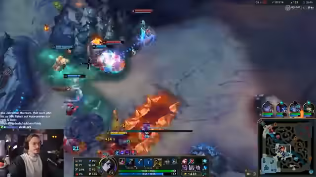 01:50:03Die Spieler bereiten sich auf das Finale vor und diskutieren über Champion-Bans. Es wird vorgeschlagen, Champions wie Yves, Viego, Master Yi und Nocturne zu bannen. Ein Spieler schlägt vor, Samira im Jungle zu spielen, wenn ihre Chains gebannt sind. Es wird über die Möglichkeit gesprochen, den gegnerischen Jungle auf Level 1 zu invaden. Die Spieler wählen ihre Champions, wobei Daniel überlegt, ob er Top oder Mid gehen soll. Es wird über AD- und AP-Builds diskutiert. Die Spieler werfen Herzen und diskutieren über Fiora als Toplaner. Es wird über die Stärke von Nautilus gegen Leona gesprochen und über Skins. Die Spieler versuchen, die Toplane zu pushen und den Tower zu zerstören. Ein Spieler stirbt in der Midlane, und es wird über die Notwendigkeit von Keksen gesprochen.