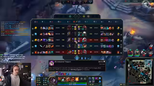 00:36:32Die Kämpfe im Spiel werden intensiver, mit Flash-Einsatz und erfolgreichen Kills. Die Diskussion über Champion-Picks geht weiter, wobei Poppy als nicht optimal für die aktuelle Situation angesehen wird. Der Streamer plant, den Herald zu starten und bittet Yushi um Unterstützung. Die Top-Lane wird als nächstes Ziel in Betracht gezogen, aber die Gegnerin ist wahrscheinlich von Top nach Bot rotiert. Ein Teamkampf am Drake wird versucht, aber das eigene Team hat keinen Engage und der Drake geht schnell verloren. Die Evelynn des Gegners wird als gefährlich eingestuft. Ein Baron-Steal wird in Erwägung gezogen, da das gegnerische Team den Baron startet. Der Streamer schlägt vor, mit Serhats Ult den Baron zu stehlen. Nach einem erfolgreichen Teamkampf und dem Erhalt des Nashor-Buffs wird die Strategie besprochen, die Mid-Lane zu pushen. Die Kommunikation bleibt hektisch und voller Adrenalin, während die Spieler versuchen, ihre Vorteile zu nutzen und das Spiel zu beenden. Der Streamer überlebt knapp mehrere brenzlige Situationen und lobt die Teamkollegen für ihre Aktionen.