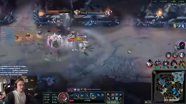 02:09:11In der Endphase des Finales wird die Toplane komplett zerstört. Die Spieler versuchen, den Drachen zu sichern und die Gegner abzuhalten. Es kommt zu einem Teamfight um den Drachen, bei dem Lilia und Leona ihre Ults einsetzen. Die Spieler sind frustriert über die Stärke der Gegner und die Schwierigkeit, sie zu besiegen. Es wird über die Notwendigkeit gesprochen, Vision zu setzen und den Atakan zu sichern. Ein Spieler stirbt in einem Teamfight, und es wird über die Schwierigkeit gesprochen, gegen bestimmte Champions zu spielen. Die Spieler versuchen, den Drachen zu holen, aber die Gegner sind zu stark. Es kommt zu einem letzten Teamfight, bei dem die Jinx viel Schaden verursacht. Die Spieler verlieren das Spiel und diskutieren über ihre Performance und die Stärke der Gegner. Es wird über die Notwendigkeit gesprochen, andere Teams zu bilden und die besten Spieler aufzuteilen.
