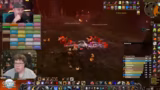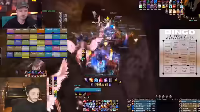 04:12:12Der Kampf gegen Garr ist voller spannender Momente und enger Rettungen. Ein Krieger, Kevin, erleidet einen Close Call mit Double Fire Blossom und überlebt nur knapp durch seine Ice Barrier. Auch Gucci wird auf 5% Lebenspunkte reduziert, überlebt aber dank eines vollständigen Fire Protection Tranks. Ein Hunter hat den cleveren Gedanken, mit der Fähigkeit Get On umherzuziehen, um den Bombe-Mechanic zu umgehen, was jedoch strategisch nicht ideal ist, da er dann den Debuff weitertragen müsste. Es wird die allgemeine Stimmung im Raid als hektisch aber effizient beschrieben.
