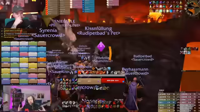 03:13:35Während des Raids kommt es zu einem kritischen Fehler bei der Anwendung der World Buffs. Jonsmann hat versehentlich ein Buff-Paket abgefeuert und es sofort wieder eingepackt, was zur Folge hat, dass seine Buffs eine kürzere Duration haben. Der Streamer weist darauf hin, dass dies nachteilig ist, und erklärt die Vorgehensweise. Beim Trash-Mob der Kernhunde wird die Strategie besprochen, die Adds gleichzeitig zu töten, wobei der Streamer betont, dass Execute-Crits den entscheidenden Unterschied im DPS-Meter ausmachen.