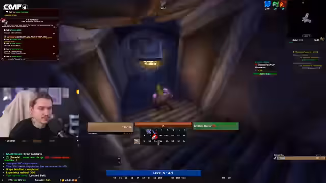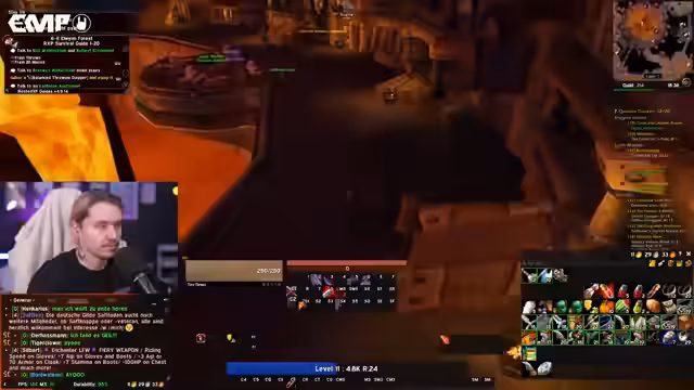 08:08:30Der Streamer plant sein weiteres Vorgehen bis Level 60. Er äußert die Idee, gemeinsam mit anderen Spielern wie Baso, Linda oder einem längeren Co-Op-Stream die Dungeons wie Deadmines zu bestreiten, um schneller voranzukommen. Dabei erwägt er auch, potenzielle Tank-Kandidaten aus seiner Gilde zu identifizieren, darunter den bereits erwähnten Paladin und erfahrene Spieler wie Fallgan oder Kevin. Ziel ist es, eine koordinierte Gruppe für zukünftige Endgame-Inhalte wie Molten Core zu bilden, sobald genug Spieler das Level 60 erreicht haben.