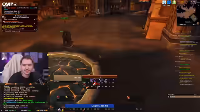 09:02:32Die Gruppe um den Streamer analysiert einen katastrophalen Dungeon-Run, bei dem mehrere Level-60-Spieler starben. Besprochen wird die Verwendung von Notfall-Mitteln wie Petri und Light of Elune. Es wird kritisiert, dass der Tank Hahn in der Stresssituation nicht optimal handelte und Möglichkeiten zum Überleben ungenutzt ließ. Die Diskussion zeigt die Komplexität der Entscheidungen unter Zeitdruck in Hardcore-World-of-Warcraft.