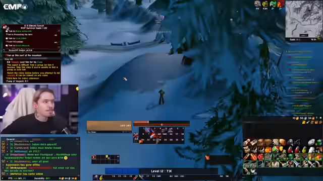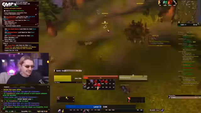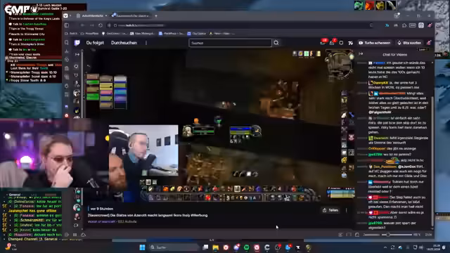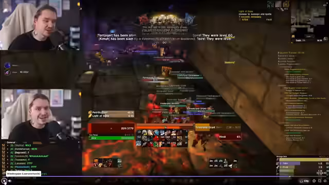 03:07:22Während des Level-60-Dungeon-Grinds stirbt eine große Gruppe von Spielern, darunter Toro, T-Cakes und weitere, nachdem ein komplexer Skip-Versuch im Dungeon scheitert. Die Beteiligten diskutieren die Ereignisse, wobei Unklarheiten über den genauen Ablauf herrschen – ein Auslöser für den 'Ruhestein'-Aufruf war entscheidend, aber die Gruppe konnte sich nicht rechtzeitig retten. Die Stimmung ist frustriert, besonders weil mehrere erfahrene Spieler betroffen sind und wertvolle Items verloren gehen. Der Streamer reflektiert über die Dynamik im Kampf, erwähnt spezifische Rollen wie Tank und Heiler, und betont, dass die Situation schnell eskaliert ist. Am Ende wird klar, dass dies nicht nur ein persönlicher Rückschlag ist, sondern die gesamte Gildenfortschritte betrifft.