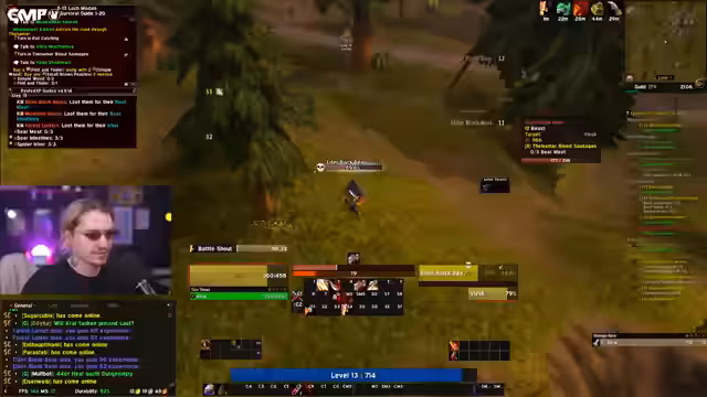 00:12:08Der Streamer erwähnt, dass er kurzzeitig in den Kamin gefühlt wurde und 50 Gold für den Guild-Markt verdient hat. Er spricht über das Guild-Meeting und diskutiert, wie Gold verdient werden kann, während er auf frühere Mängel anspielt. Außerdem werden Dungeon-Bosse erwähnt, die gute Stoffgürtel droppen, und es wird über Anlocken von Gegnern diskutiert.