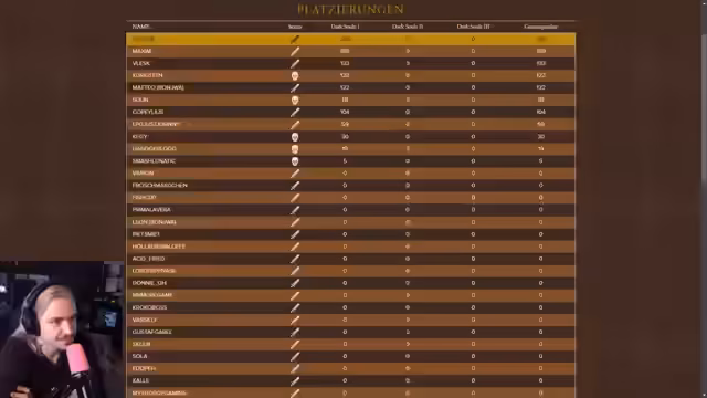 00:10:32Es gab einige unerwartete Ereignisse vor dem Stream. Zuerst ging das Laufband plötzlich an, ohne dass es jemand bedient hatte. Dann zog es während des Boulder-Trainings am Morgen im Nacken, vermutlich ein eingeklemmter Nerv. Ursprünglich wollte ich den Stream ausfallen lassen und stattdessen den Runs von Sterzig und Hanno zusehen. Nachdem Hanno aber gestorben war und Sterzig aufgehört hatte, entschied ich mich, doch zu streamen, da ich zu ungeduldig war, um nicht selbst zu spielen. Ich hatte gehofft, den Runs von Max zuzusehen, aber es gab nichts mehr zu sehen. Ich habe mir Clips von anderen Spielern angesehen und das Leaderboard gecheckt, wobei Sterzig kurz davor war, das Spiel durchzuspielen. Ich erwähne, dass ich gehofft hatte, dass Max das Spiel ebenfalls durchspielen würde, aber das nicht passiert ist. Morgen sind eigentlich Kutscher und Pizmied geplant, aber Kutscher wird doch nicht laufen. Ich habe mich entschieden zu streamen, weil das Teilnehmerfeld heute dünner besetzt ist.