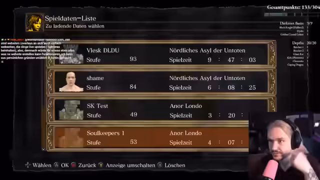 00:48:22Ich habe meine aktuelle Spielzeit von 4 Stunden und 7 Minuten erwähnt und angedeutet, dass ich möglicherweise nicht der schnellste Spieler bin. Maxim wird wahrscheinlich weniger Punkte haben, da er eine bestimmte Quest nicht abgeschlossen hat. Ich habe erwähnt, dass es drei Gamesieger geben wird und einen Gesamtsieger. Ich habe erklärt, dass ich Luni, meine Katze, gefüttert habe, bevor ich mit dem Streamen begann, und dass ich sie nicht aufwecken möchte, während sie schläft. Ich spiele DS1 auf Deutsch, weil ich vergessen habe, es auf Englisch zu installieren, und weil es für den Stream angenehmer ist. Ich gehe in Kürze ins Spiel und betone, dass es in Anor Londo direkt spannend wird. Ich muss zuerst über den Balkon, was man cheeseen kann, und dann kommt meine Hastelle, die Archer, für den Rest des Runs. Ich habe die Möglichkeit in Betracht gezogen, die Kristallhelebarde zu verwenden, mich aber für die Keule entschieden. Ich habe noch ein paar Level und plane, Vitalität, Stärke und Kondition zu erhöhen. Ich werde die Archer ohne Giftpfeile angehen.
