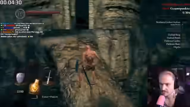 04:53:53Nach dem unglücklichen Tod wird das erreichte Tempo von vier Stunden und 196 Punkten als beachtlich bewertet und mit dem letzten Run verglichen. Der Streamer überlegt, ob er in einem No-Death-Run schneller gewesen wäre, stellt aber klar, dass der Fokus auf Punktewertung liegt. Die Perspektive für Dark Souls 2 wird als spannend angesehen, da der Vorsprung von Maxim, der ausgeschieden ist, nun geringer ist. Der Drachen wird als unfairer und unvorhersehbarer Boss kritisiert, der ein spezifisches Guide-Wissen erfordert.