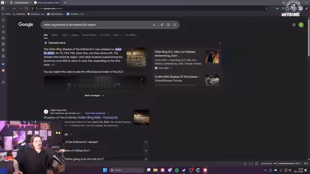 00:13:33Der Streamer kündigte einen „Vanilla Amogus Stream“ an, bei dem in kleiner Gruppe Among Us gespielt wird. Hauptaugenmerk lag jedoch auf der bevorstehenden Elden Ring DLC-Session, die am nächsten Tag starten sollte. Der Plan war, den DLC „Shadow of the Erdtree“, der vor anderthalb Jahren veröffentlicht wurde, ohne Unterbrechung durchzuspielen. Es wurde sogar eine „Bestrafung“ für den Fall in Aussicht gestellt, dass der Stream vorzeitig beendet oder der Streamer einschlafen sollte. Obwohl ein Termin am Freitagnachmittag die Session unterbrechen könnte, war die Absicht, so lange wie möglich durchzuhalten. Es wurde auch erwähnt, dass ein vorbereiteter Charakter für den Run existiert und eventuell noch ein, zwei Gegenstände nach dem aktuellen Stream gesammelt werden. Die Idee eines „Schlaf-Streams“ wurde verworfen, da dies als unproduktiv für die Zuschauer angesehen wurde. Stattdessen soll der Timer bei Pausen angehalten und die Tode gezählt werden, bis der letzte Boss des DLCs besiegt ist. Alte VODs aus den Jahren 2020/2021 sind leider nicht mehr verfügbar, da Twitch diese nach einer bestimmten Zeit löscht, es sei denn, sie wurden auf YouTube hochgeladen oder in einem Stream-Archiv ab 2023 gesichert.