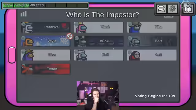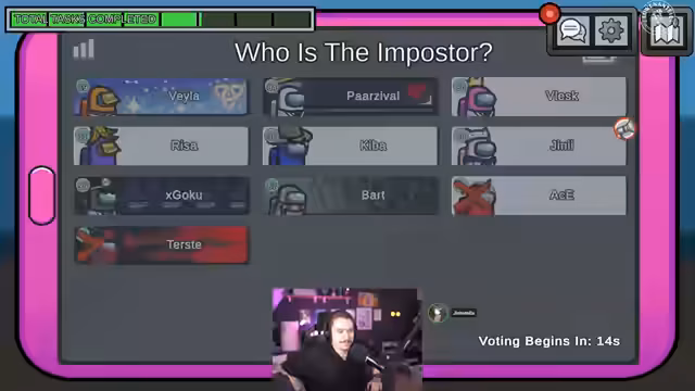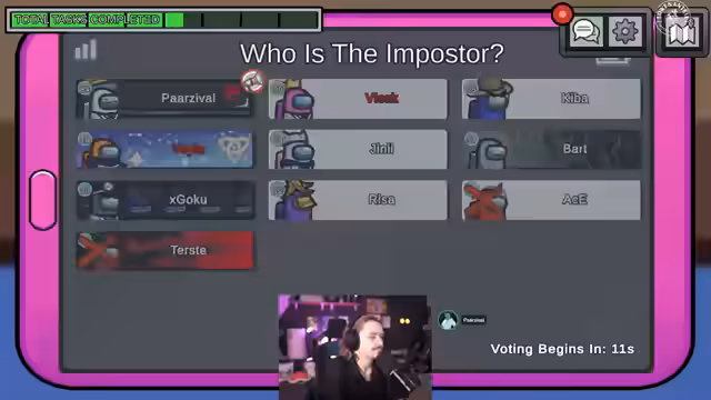 01:45:18Nach einem Kill in Storage kommt es zu einer hitzigen Diskussion. Ein Spieler behauptet, Vela beim Töten gesehen zu haben, während Vela dies vehement bestreitet und darauf besteht, den Report-Button gespammt zu haben. Die Spieler streiten sich darüber, wer zuerst den Button gedrückt hat und ob dies ein Beweis für die Unschuld oder Schuld ist. Es wird die Frage aufgeworfen, ob es ein 'Goku-Parzi-Imposter-Duo' geben könnte, das einen Double-Kill versucht hat. Die Spieler diskutieren über die Regeln des Spiels, insbesondere darüber, wer zuerst reden darf, wenn ein Report gemacht wird. Es wird auch die Möglichkeit eines strategischen 'Boster-Buttons' in Betracht gezogen, der absichtlich gedrückt wird, um andere Spieler zu täuschen. Die Diskussion eskaliert, da die Spieler versuchen, die Wahrheit herauszufinden und die Imposter zu identifizieren.
