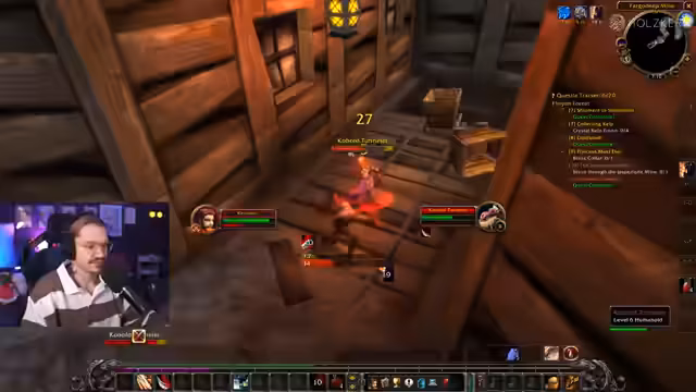00:25:11Um optimal für das Hardcore-Event gewappnet zu sein, installiert Vlesk mehrere Addons. Dazu gehören 'Elf UI' für ein übersichtlicheres Interface, 'Unitscan Hardcore' zur Warnung vor gefährlichen Elite-Gegnern, 'Weak Auras' für bessere Übersicht über Fähigkeiten und 'What's Training', um zu sehen, welche Fertigkeiten der Charakter beim Leveln lernt. Er kritisiert das Standard-UI von WoW Classic scharf, insbesondere die unpraktische Platzierung der Lebensanzeige links oben und fehlende Namensplatten. Vlesk experimentiert mit der Benutzeroberfläche, um Fenster verschiebbar zu machen, und betont, wie wichtig klare visuelle Informationen für das Überleben im Hardcore-Modus sind.