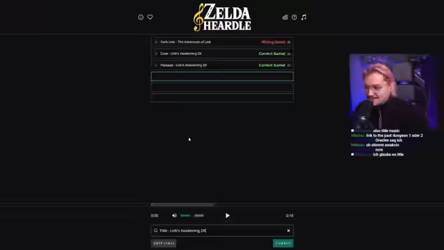 01:46:51Der Streamer testet verschiedene Zelda-Soundraten aus einem Wordle-Klon. Nach anfänglichen Schwierigkeiten bei der Identifizierung der 8-Bit-Sounds vermutet er Zelda 2 oder The Adventure of Link. Später gelingt ihm die korrekte Zuordnung zu Link's Awakening anhand der Klänge von 'Cave', 'Passage' und 'Title'. Obwohl er 'Tail Cave' errät, findet er das Spiel nicht befriedigend und wechselt zum nächsten Modus 'Hurdle', bei dem es ebenfalls um Musikraten geht.