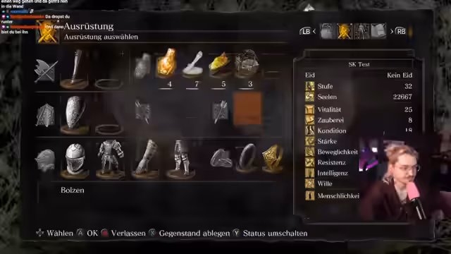 00:08:12Der Stream beginnt mit einer Begrüßung der Zuschauer und einer kurzen Entschuldigung für die Verspätung. Es wird angekündigt, dass ab heute Soulkeepers startet, der spirituelle Nachfolger von DLDU, dem Dark Souls-Format von Bonjwa, jetzt von Hanno übernommen. Das Format läuft die ganze Woche bis Sonntag in Dark Souls 1. Ziel ist es, das Spiel idealerweise ohne zu sterben durchzuspielen. Für jeden Boss und Miniboss gibt es Punkte, und der Teilnehmer mit den meisten Punkten am Ende ist der Etappensieger. Es ist in drei Teile unterteilt: Dark Souls 1, 2 und 3 in den nächsten Monaten. Es wird erwähnt, dass der Streamer heute mit Dark Souls 1 beginnt, um ein wenig zu üben und eine Strategie zu entwickeln für den richtigen Run am Mittwoch. Es wird überlegt, welche Waffen gespielt werden sollen und ob die Steuerung noch sitzt. Es wird die Soulkeepers-Seite aufgerufen, um zu sehen, wer sich bereits eingetragen hat. KDR Kitten führt aktuell mit 13 Punkten, und einige bekannte Namen wie Barion, Smalu und Froschmädchen sind ebenfalls dabei. Der eigene Run ist für Mittwoch um 18 Uhr geplant. Es wird erwähnt, dass es ein gemischtes Feld von Spielern mit unterschiedlicher Souls-Erfahrung gibt, was den Reiz des Formats ausmacht. Es wird betont, dass es nicht schlimm ist, wenn jemand stirbt, und dass der Spaß im Vordergrund stehen soll. Der Streamer plant, einen Trainingsrun zu starten, um sich DS1 noch einmal anzusehen und im Idealfall an Stellen zu sterben, an denen er sonst im richtigen Run gestorben wäre.