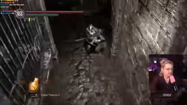 01:33:01Der Streamer überlegt, ob er zuerst zu Cupra oder zum Schweinchen gehen soll, entscheidet sich aber für Cupra, da er dort Upgrades für seine Waffe benötigt. Er behält eine Twin Humanity und blockt Angriffe, um sicher zu sein. Es wird erwähnt, dass die Gegner im Asylum mit einer bestimmten Attacke sehr viel Schaden verursachen können. Der Tournament wird gefunden. Der Streamer achtet auf Blutungen, vermeidet aber Backstabs und Parrys, indem er Jump-Attacks ausführt. Er heilt sich mit Humanity hoch. Der Streamer erinnert sich an eine bestimmte Stelle im Spiel und überlegt, ob er links oder rechts rumgehen soll, um sicher zu sein. Er trollt ein wenig und besiegt einen Gegner. Es wird erwähnt, dass Capra-Cheese im Run nicht erlaubt ist. Der Streamer erkennt, dass er einfach den Shortcut freistellen kann. Er kauft Giftpfeile für 100 Seelen und überlegt, ob er Anna Londo mit Gefallen spielen soll. Der Hennodukt wird vergessen und der Streamer geht kurz runter. Er levelt Vitalität auf, da er Havels Ring hat und viele Hits tankt. Es wird diskutiert, ob es bei Soulkeepers Modifikationen gibt, wie zum Beispiel keine Waffenleveln. Der Streamer geht in die Stadt der Untoten und dann in die Untiefen, um zum Gaping Dragon zu gelangen. Er nimmt Seelen und besiegt einen Hund. Es wird erwähnt, dass man Geduld mitbringen und nicht durchbeißen sollte, um Spaß an Dark Souls zu haben. Der Streamer überlegt, ob er Blightown fertig machen soll, um Titanite Shards zu bekommen. Er springt einem Gegner auf den Kopf und bekommt dafür drei Punkte. Der Streamer fragt sich, wie er am schnellsten zum Gaping Dragon kommt und erinnert sich, dass dort ein Invader war. Er tötet Kirk und nimmt Humanity. Es wird erklärt, was Normen Menschlichkeit bringt. Der Streamer kauft Goldharz und erinnert sich, dass er die Channeler töten muss, bevor er zum Gaping Dragon geht, da diese ihn sonst buffen. Er ist verwirrt, wo er langlaufen muss und sucht den Weg nach oben, um die Channeler zu töten.