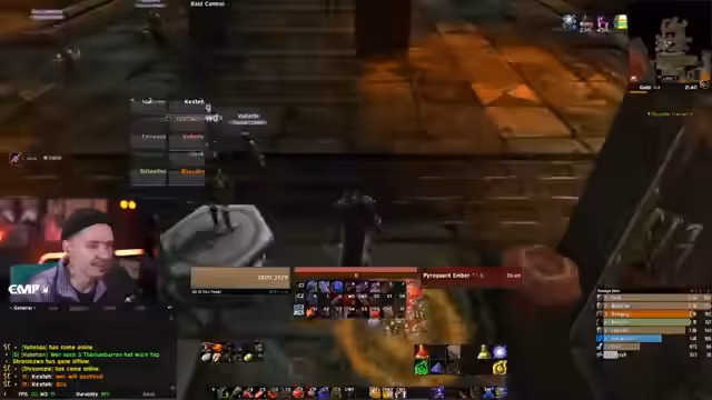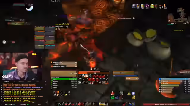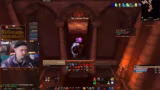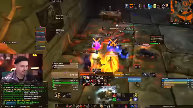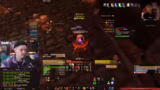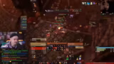 09:24:55Der nächste Boss, ein Drache, wird vorgestellt. Er hat zwei wichtige Mechaniken: er kann Tanks 'führen' und zufällige Spieler anchargen. Die Tanks benutzen den Berserker-Stance und Fear-Breaks, um der 'Führung' zu entgehen. Ein Priester und der Streamer selbst mit Fear Ward werden eingesetzt, um den Fear-Effekt zu kontrollieren. Der Boss fliegt in die Luft und kann Spieler von der Kante stoßen. Der Streamer beschreibt die Execute-Phase und die Feuerzecke-Ability.