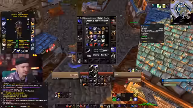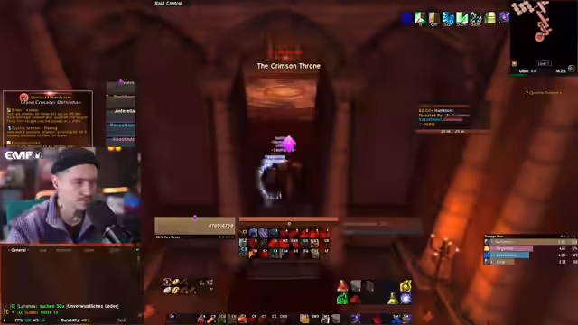 02:49:03Ein technisches Problem wird angesprochen: der verzögerte Austritt aus Dungeon-Gruppen. Es wird ein Makro vorgeschlagen, das den Austritt beschleunigen soll. Der Mechanismus funktioniert so, dass man bei 'Aus Gruppe verlassen' das schwarze Fenster abwartet und dann eine Taste für den Logout drückt. Gleichzeitig erklärt ein Streamer das 'Lockout'-System: Man kann nur fünf Instanzen pro Tag betreten. Nach Füllen dieser 'Lockouts' muss man warten, bis der erste wieder freigegeben wird. Dies wird für die geplanten Strat-Oder-Spam-Runs entscheidend sein.
