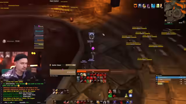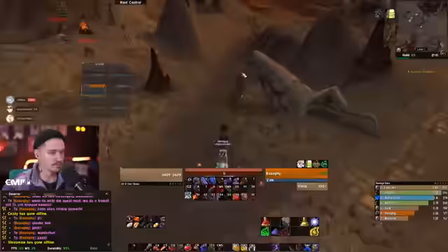 04:03:41Snowy postet und entschuldigt sich bei der Gildenleitung für beinahe einen Zonenverlust im Raid. Der Streamer fängt sich von einem harten Tod im Raid und erwähnt, wie sehr ihn das frustriert. Es wird über den Aufbau für den nächsten Raid gesprochen, wobei es sich um eine Herausforderung ohne True Shot Aura und Rudelführer handelt. Er ist motiviert und bereit zu calle.