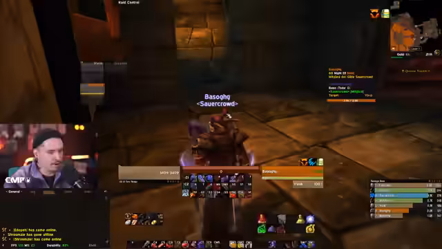 08:49:09Die wichtigste Regel im ersten Raum ist, an der Wand zu bleiben, um nicht von den Monstern die Treppe hinuntergeworfen zu werden. Die Streamer betonen, dass es wichtig ist, an der Wand zu bleiben, um die Eier nicht zu ziehen und den Raid zu gefährden. Zuerst müssen die Flammenschuppen, die Caster-Monster, getötet werden, da sie einen AOE-Schaden verursachen. Es wird ein Wand-Hacken-Pull durchgeführt, bei dem der Streamer einen Boss und zwei Orks zieht und die Gruppe an der Wand bleibt.