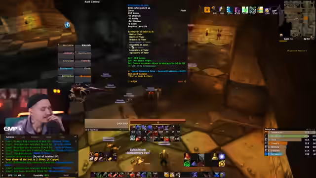 06:45:33Die Vorbereitung für den Raid erfordert flexible Koordination. Der Streamer erwägt, möglicherweise als Ersatz-Tank in Molten Core (MC) einzuspringen, falls Notwendigkeit besteht, oder alternativ mit anderen Spielern im Wald von Elving zu Dungeons zu ziehen. Gleichzeitig wird die Gruppeneinteilung für die LBS- (Lower Blackrock Spire) und UBS- (Upper Blackrock Spire) Runs festgelegt. Es werden Spieler ausgetauscht, damit bestimmte ihre Quests abschließen können, und es wird nach einem erfahrenen Guide für LBS gesucht, da das Wissen in der Gruppe als gering eingeschätzt wird.