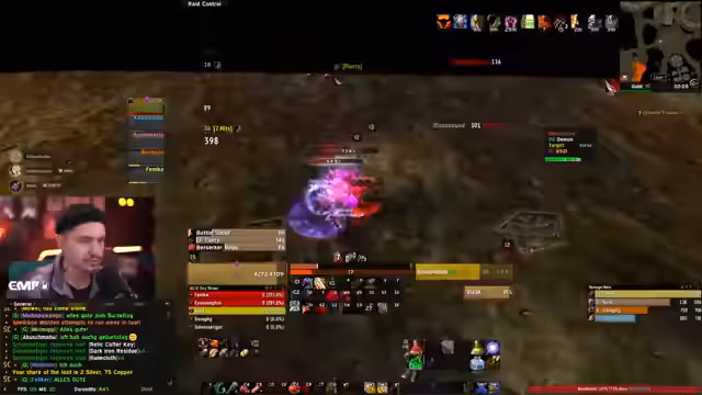 10:39:37Nach einem erfolgreichen Dungeon-Run wurde der große Erfolg bei der Itemverbesserung gefeiert. Einem Spieler gelang es, seinen Hitcap zu vervollständigen und wertvolle Gegenstände wie einen neuen Gürtel und T0-Brust zu erhalten. Der Fokus lag auf der Frage, wie man die erbeuteten Items am besten verteilen kann, um alle Bedürfnisse der Guild zu berücksichtigen. Es wurden verschiedene Items wie 'Hedge' und 'Iron Foe' erwähnt, die von bestimmten Spielern gebraucht würden, und die Koordination für das Farmen dieser Gegenstände wurde besprochen.