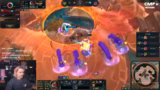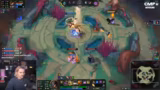 02:55:52Während des Spiels wird die Strategie angepasst. Gegen bestimmte Teams wird ein langsames, defensives Spiel angestrebt, um Fähigkeiten wie Timestop zu stacken und gleichzeitig Portale zu meiden. Der Streamer analysiert die gegnerischen Compositions, wobei er Zac als besonders problematisch identifiziert, da dieser effektiv zonen kann. Trotzdem wird die Teamperformance als stark wahrgenommen, auch wenn man in der Eliminationsrunde ausscheidet.