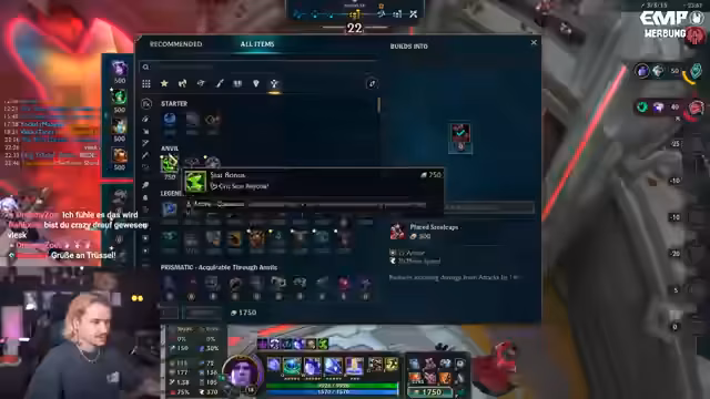 02:53:44Zu Beginn des Streams konzentriert sich der Streamer auf die Wahl seiner Champions und Items für das Bravery Arena Turnier. Er entscheidet sich für Rakan und Xerath und betont die Wichtigkeit von Items wie AI und Lord Dominix. Die Strategie zielt darauf ab, hohen Schaden zu erzeugen, wobei Rakan und Xerath als Kern der Composition dienen. Auch das Portal wird als wichtiges strategisches Element für das Spiel angesehen.