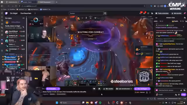 01:27:30Der Stream startet mit einer Diskussion über die Arena-Queue und das geplante Turnier für 100 Subs. Es wird erörtert, ob es Vorteile bei der Auswahl der Level gibt und wie sich Augments wie Mad-Hatter entwickeln. Während Hüte mit good Stats als broken gelten, ist das Risiko hoch, da man zehn Hüte benötigt und sie erst nach einem Sieg aktiviert. Wer dafür tryhardt, kann bei einer Niederlage massiv Gold verlieren. Die Spielergruppe zeigt sich sehr engagiert und tryharden in den Lobbys, um mithalten zu können.