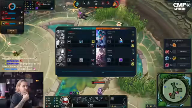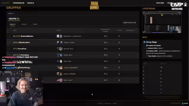 00:07:28Der Streamer startet einen ungewöhnlich frühen Stream um 14 Uhr, um an einem Autofill Arena-Turnier teilzunehmen. Bei der Überprüfung der Teams entdeckt er einen organisatorischen Fehler, da neun Teams statt der erforderlichen acht angemeldet sind. Um das Problem zu lösen, wird eine Teilnehmerin, Lesk, basierend auf einer unfairen Methode aussortiert, was dem Streamer unangenehm ist. Nachfolgende technische Schwierigkeiten, wie ein Missverständnis wegen zweier Sprachnachrichten eines Teilnehmers, sorgen für zusätzliche Aufregung.