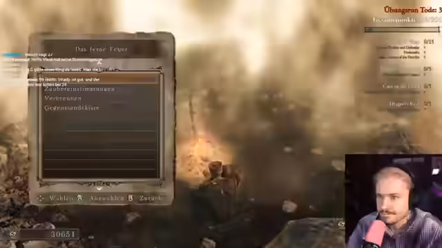00:42:58Der Streamer beginnt mit dem Training für Soulkeepers DS2 und stellt fest, dass er das Spiel vor drei Jahren zuletzt gespielt hat und somit relativ wenig Erfahrung hat. Er diskutiert mögliche Klassen und Builds, die er für den Run verwenden könnte, und erwähnt, dass er vorhat, den Claw-Grip für den Controller zu lernen, um besser im Spiel zu performen. Er zeigt seine anfänglichen Schritte im Spiel und ist unsicher über die besten Startauswahl für den Run.