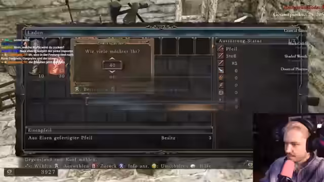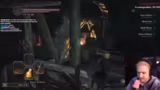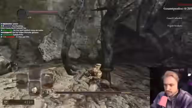 04:02:14Der Streamer kämpft gegen Pusure, wobei er auf Holztürme schießt, um Gegner auszuschalten. Gleichzeitig muss er auf die Pfeile der Gegner achten, die ihm Schaden zufügen. Nach einigen Schwierigkeiten mit dem Parry-Mechanismus gelingt es ihm, den Boss zu besiegen. Danach muss er seine Waffe reparieren und stellt fest, dass dies 1.200 Seelen kostet, was er für übertrieben hält.