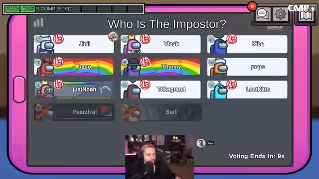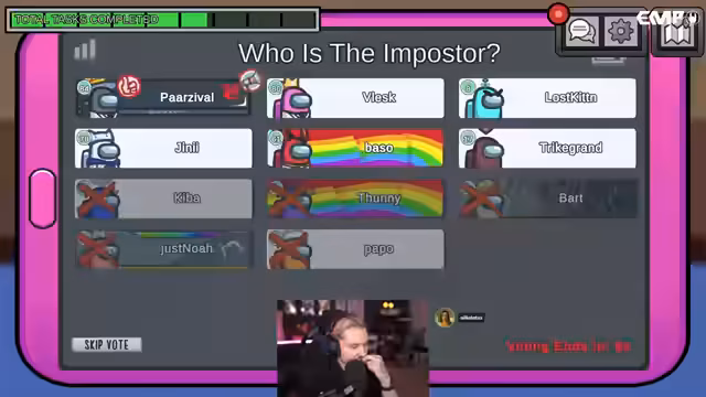 02:12:51Die Spieler müssen abstimmen, und die Diskussion wird hitzig. Lost Kitten wird weiterhin als verdächtig angesehen, da sie in der Vergangenheit als Imposter ähnliche Verhaltensweisen gezeigt hat. Ein Spieler muss Kiba voten, da er nicht versteht, wo Toonie dann ist, wenn Kiba und Toonie zusammen waren. Es wird spekuliert, dass Papu und Baso die Imposter sind, wobei ein Spieler vehement Baso ausschließt, da Nico ihn gerettet hat. Es wird argumentiert, dass Papo, der in den letzten beiden Runden als Erster gestorben ist, eine Imposter-Rolle verdient hätte. Ein Spieler gibt zu, versehentlich seinen Hund getötet zu haben, was zu allgemeiner Belustigung führt. Die Runde wird als „schön“ bezeichnet, und die Spieler äußern den Wunsch, dass jemand anderes Imposter wird. Ein Spieler, der bereits drei Runden Imposter war, möchte nicht mehr sein. Vleskin hat gevotet, weil er nicht dachte, dass sie die richtigen Leute voten würden, und wusste, dass Keyboard es nicht ist. Es wird festgestellt, dass Papo und Kitten nicht zusammen Imposter sein konnten. Die Situation wird als schwierig beschrieben, da es sich um eine Anfänger-Lobby handelt. Am Ende wird enthüllt, dass die Imposter Papo und Baso waren. Die Spieler diskutieren die Strategien und die Schwierigkeiten, die Imposter in dieser Lobby zu identifizieren.