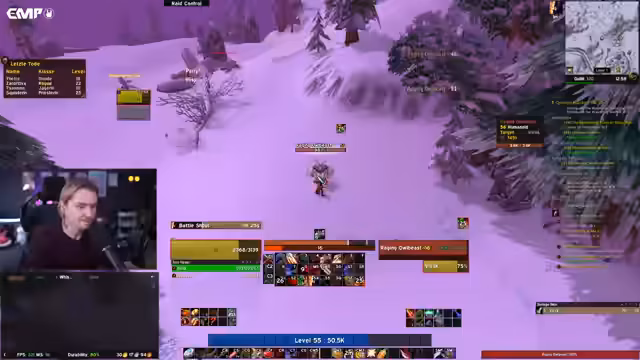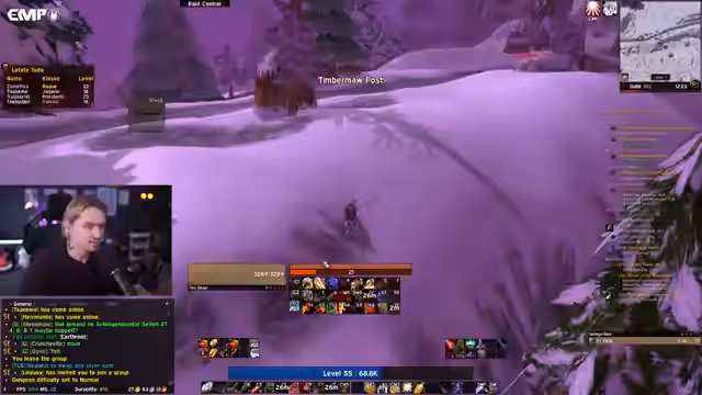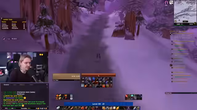 08:26:40Im letzten Zeitraum von 30400 bis 32904 schließt der Streamer Quests in Felwood und Winterspring ab und bereitet sich auf BRD vor. Er erledigt Yeti-Quests in Winterspring, sammelt Buffs und spricht über die Vorbereitung auf den BRD-Lauf mit einer Gruppe, die aus einen Shadow Priest, Feral Druid (sich selbst als Tank) und anderen besteht. Es gibt Diskussionen über mögliche Gefahren wie Griefer in Dungeonevents und die Bedeutung von Sicherheitsmaßnahmen im Hardcore-Modus. Der Streamer erwähnt auch persönliche Termine (z.B. Friseurtermin) und planender Kommunikation mit anderen Spielern über Discord für zukünftige Runs.